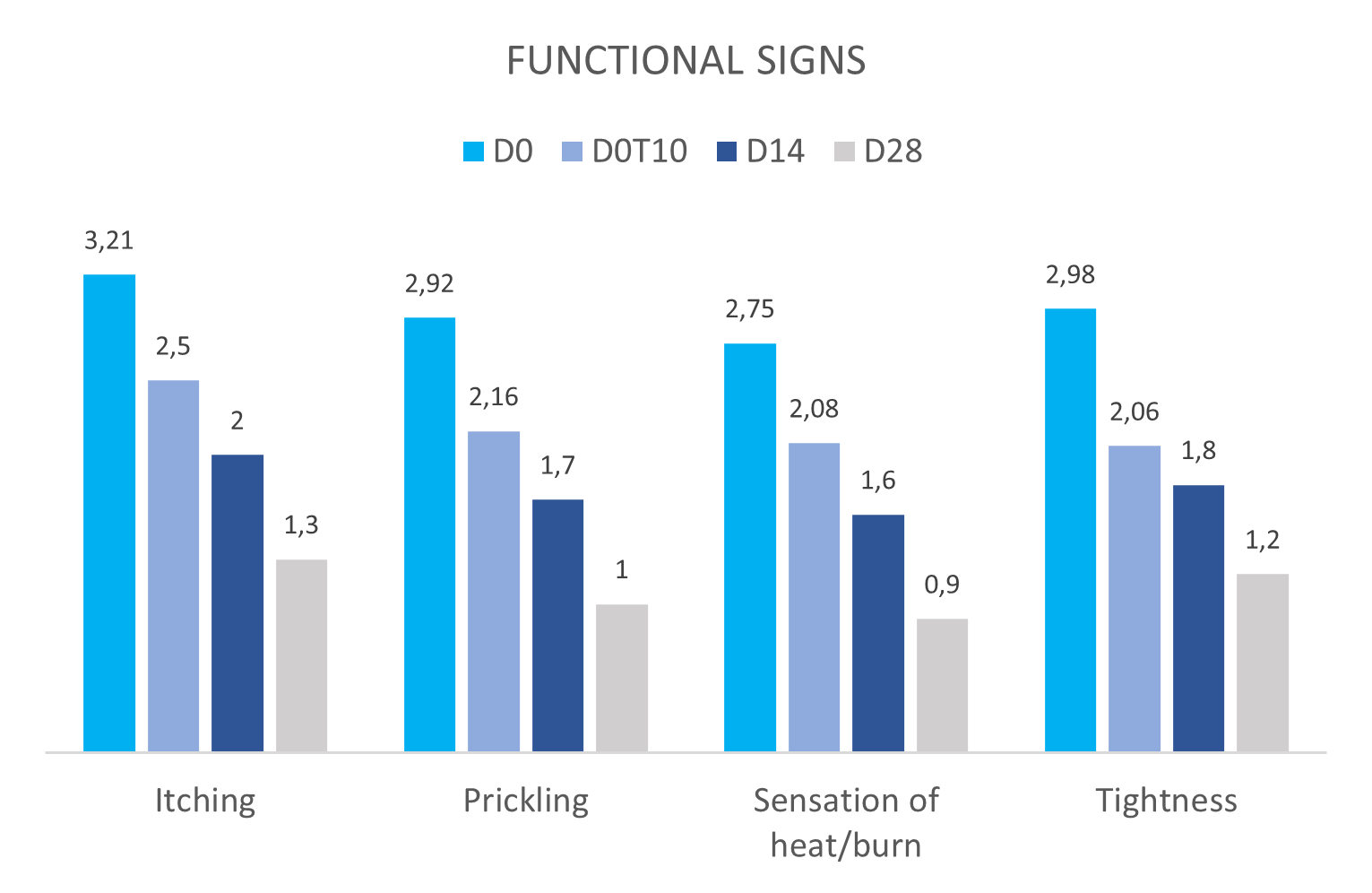 Next, a self-assessment and clinical evaluation by dermatologists was included in the study. Thanks to its soothing and repairing action: