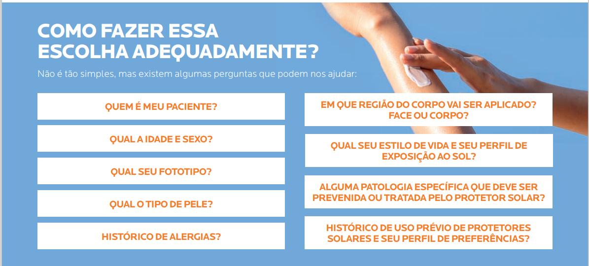 Protetor solar não é tudo igual e nós, dermatologistas, como profissionais de saúde super-especializados que somos, precisamos entender as diferenças entre os protetores para a escolha mais correta aos nossos pacientes. Quantas vezes nos deparamos com a comparação entre protetores solares baseados somente no número do FPS e nas qualidades sensoriais de sua textura?